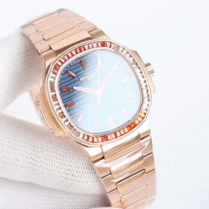 ćSuper ClonećPatek Philippe Nautilus Ladies Rose Gold Gemset Bezel 7118 1300R 001