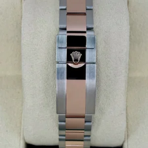 | BRACELET | – Oyster design, two tone flat three-piece links – Made with Solid 904L Grade Stainless Steel with DLC scratch-protection coating and 18k Rose Gold plating on the middle links – Solid threaded screws, so you can easily remove bracelet links with just a small screwdriver – Folding Oysterlock safety clasp with Easylink 5 mm comfort extension link, exactly as Original |