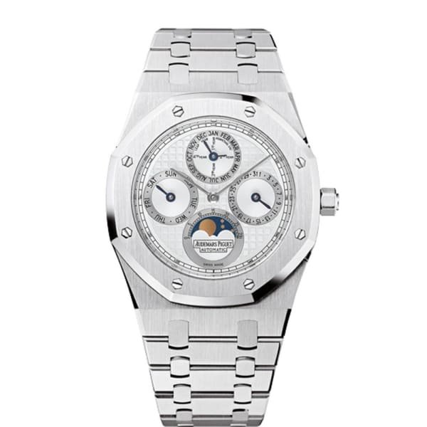 Brand new Audemars Piguet Royal Oak Perpetual Calendar, Reference # 25820SP.OO.0944SP.03, 39 mm Stainless steel and 950 platinum watch with all original accessories, original Audemars Piguet box and Audemars Piguet Warranty Card.