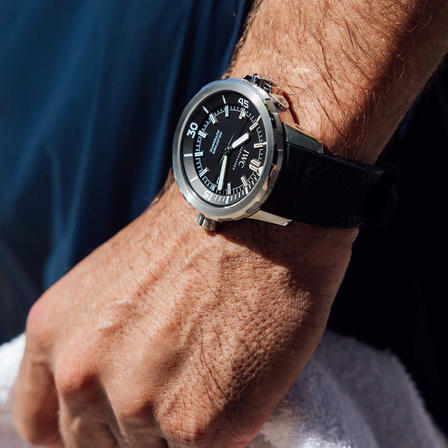 - Black rubber strap with IWC-patented quick-change system