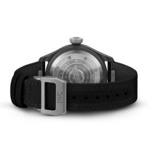 Highlights: The Pilot’s Watch 43 TOP GUN (IW329801) features an extremely hard and scratch-resistant case made of black zirconium oxide ceramic, a black dial and black hands, as well as white printing and luminescence. The case back with the engraving of the TOP GUN logo and the crown are made of titanium. Ticking away inside is the IWC-manufactured 82100 caliber. The high-end Swiss movement boasts a Pellaton winding system that has been reinforced with ceramic components and builds up a power reserve of 60-hours.