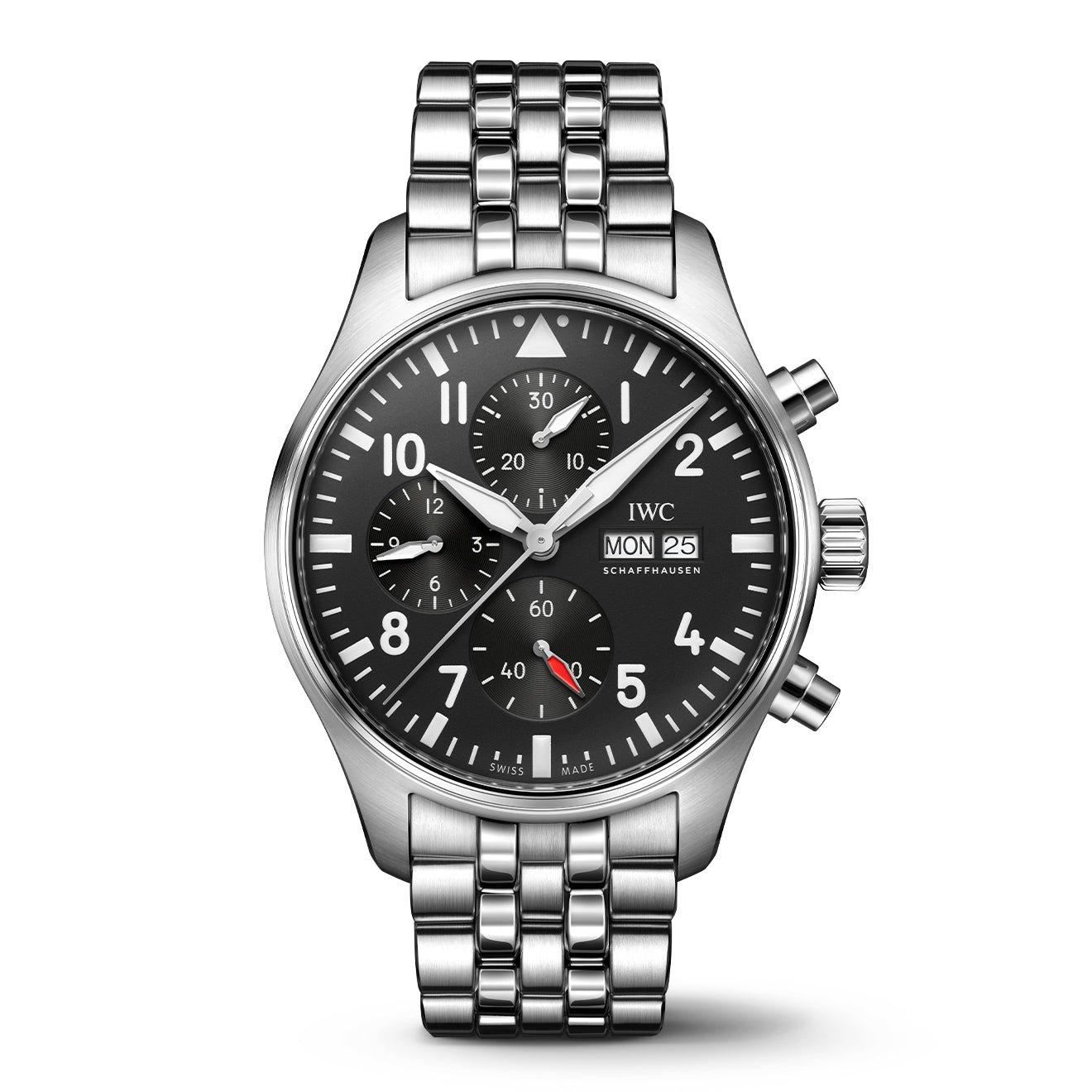 Highlights: The high-contrast dial with large Arabic numerals and the triangle index marker at 12 o’clock has been designed in the style of an easy-to-read cockpit instrument. Thanks to luminescent elements, the time can be read at a glance, even at night, or in difficult visibility conditions.