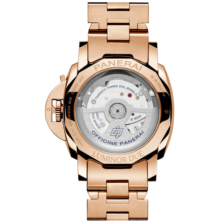 Swiss mechanical, P.900 calibre, 12 ½ lignes, 4.2 mm thick, 23 jewels, 28,800 alternations/hour. Incabloc® anti-shock device. Power reserve 3 days, one barrel. 171 components