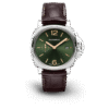 Blue sun-brushed with luminous Arabic numerals and hour markers. Date at 3 o’clock and small seconds at 9 o’clock.