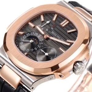【Super Clone】Patek Philippe Nautilus Moon Phases Rose & White Gold Slate Grey Dial 5712GR 001