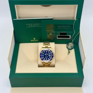 | Bezel | Unidirectional rotatable 60-minute graduated, scratch-resistant Cerachrom insert in blue ceramic, numerals and graduations coated in gold |