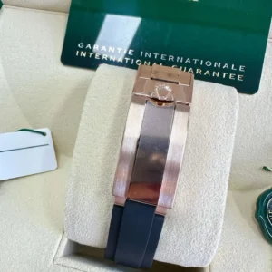 Indulge in the pinnacle of elegance and precision with the Rolex Cosmograph Daytona 126515LN-0004. This luxurious watch boasts a 40mm 18k Everose gold case and a sleek black Cerachrom ceramic bezel with a tachymeter scale. The Swiss chronograph is certified as a chronometer, ensuring precision timekeeping. The contrast between the bright black and sundust dial, featuring diamond hour markers, creates a timeless aesthetic. Complete with an Oysterflex bracelet and Oysterlock safety clasp with Glidelock extension, this Rolex watch effortlessly combines style and functionality. Enhance your watch collection with the Rolex Cosmograph Daytona 126515LN-0004.
