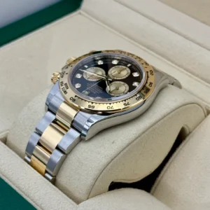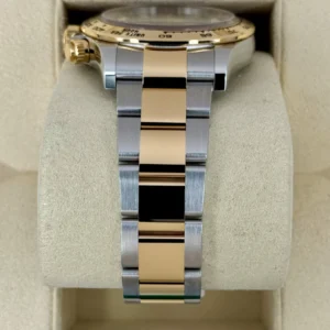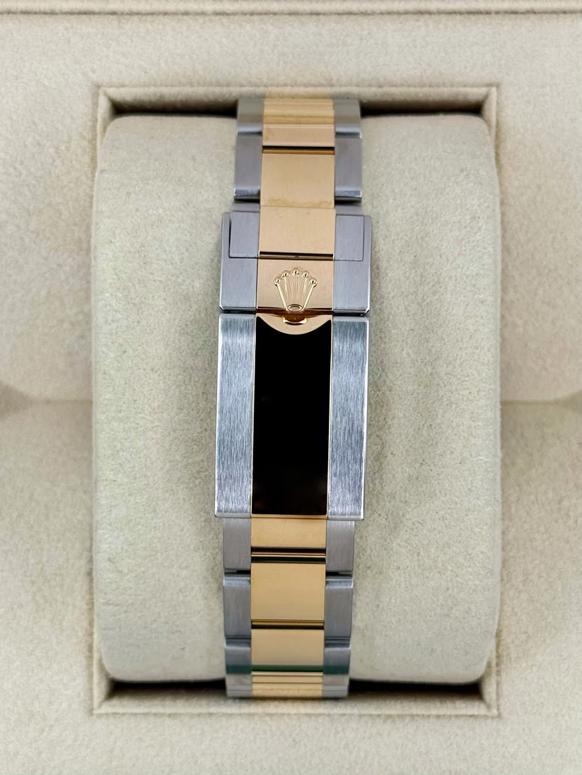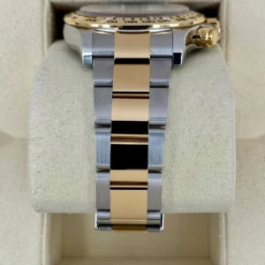| BRACELET | – Oyster design, two tone flat three-piece links – Made with Solid 904L Grade Stainless Steel with DLC scratch-protection coating and 18k Yellow Gold plating on the middle links – Solid threaded screws, so you can easily remove bracelet links with just a small screwdriver – Folding OysterLock Safety Clasp with Easylink 5 mm Comfort Extension System, exactly as Original |
