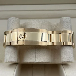 | BRACELET | – Oyster design, 18k gold plated flat three-piece links – Made with Solid 904L Grade Stainless Steel with DLC scratch-protection coating and 18k Yellow Gold plating – Solid threaded screws, so you can easily remove bracelet links with just a small screwdriver – Folding OysterLock Safety Clasp with Easylink 5 mm Comfort Extension System, exactly as Original |