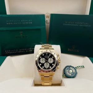 | CASE | – 40mm Oyster Case – 5 Layer 18k Gold plated over Solid 904L Stainless Steel, Monobloc Construction – Screw-Down Case-Back & Winding Crown – ROLEX ROLEX Laser Engraving on Rehaut Ring with Correct Alignment – Dimensions and Weight is Exact 1:1 Identical with Original |