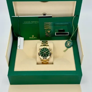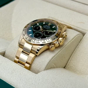 | CASE | – 40mm Oyster Case – 5 Layer 18k Gold plated over Solid 904L Stainless Steel, Monobloc Construction – Screw-Down Case-Back & Winding Crown – ROLEX ROLEX Laser Engraving on Rehaut Ring with Correct Alignment – Dimensions and Weight is Exact 1:1 Identical with Original |