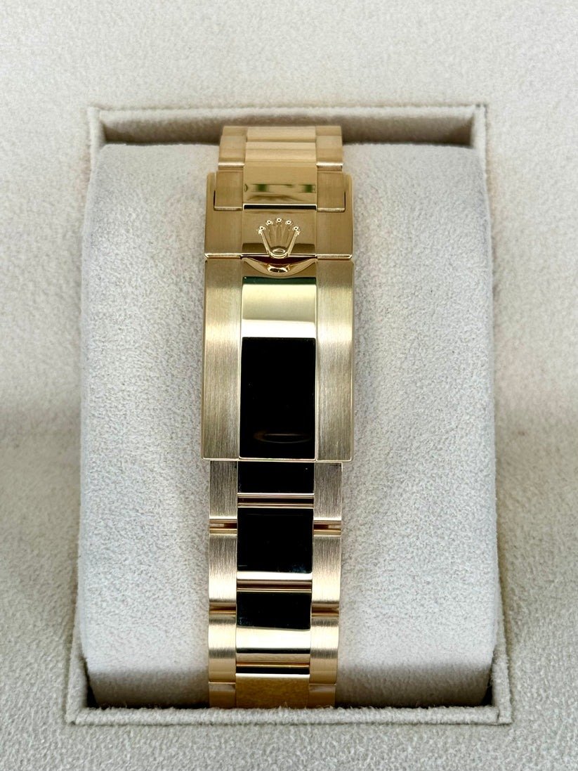 | BRACELET | – Oyster design, 18k gold plated flat three-piece links – Made with Solid 904L Grade Stainless Steel with DLC scratch-protection coating and 18k Yellow Gold plating – Solid threaded screws, so you can easily remove bracelet links with just a small screwdriver – Folding OysterLock Safety Clasp with Easylink 5 mm Comfort Extension System, exactly as Original |