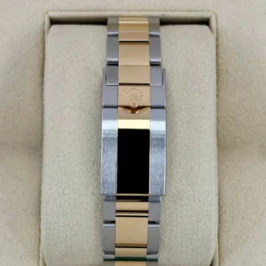 | BRACELET | – Oyster design, two tone flat three-piece links – Made with Solid 904L Grade Stainless Steel with DLC scratch-protection coating and 18k Yellow Gold plating on the middle links – Solid threaded screws, so you can easily remove bracelet links with just a small screwdriver – Folding OysterLock Safety Clasp with Easylink 5 mm Comfort Extension System, exactly as Original |