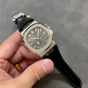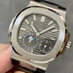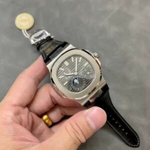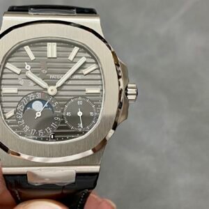 【Super Clone】Patek Philippe Nautilus Moon Phases Rose & White Gold Slate Grey Dial 5712GR 001