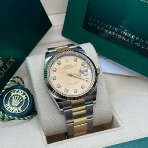 | Case Material | Yellow Rolesor – combination of Oystersteel and yellow gold |