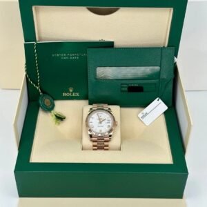 RLX Day-Date “President” 40mm Everose Gold White Roman Dial – 228235