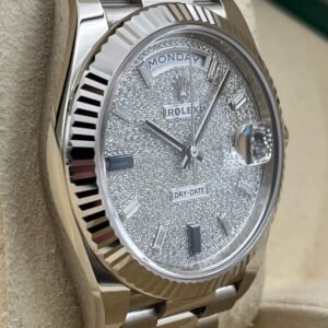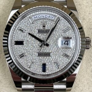 | Gem settings | Diamond-paved dial with 8 baguette-cut diamonds and 2 baguette-cut sapphires at 6 and 9 o’clock |