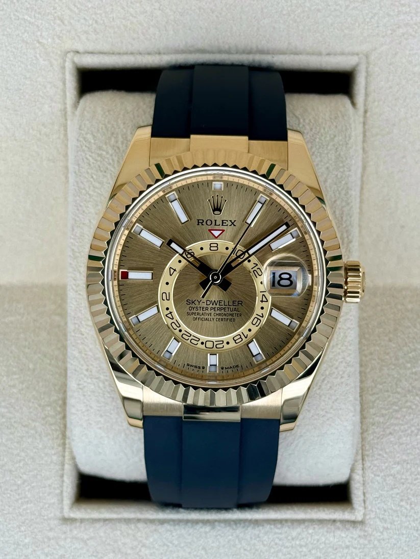 RLX Sky-Dweller 42mm Yellow Gold Champagne Dial Oysterflex – 336238