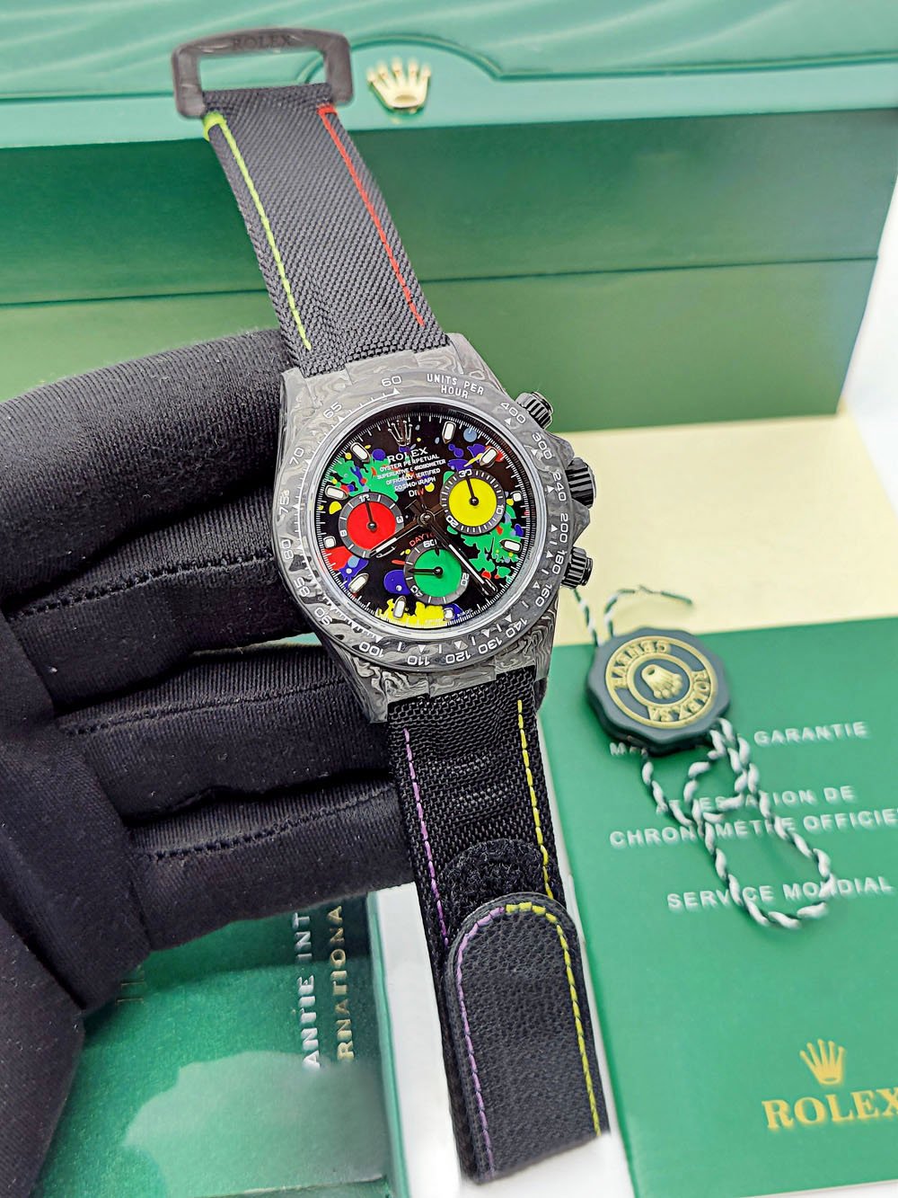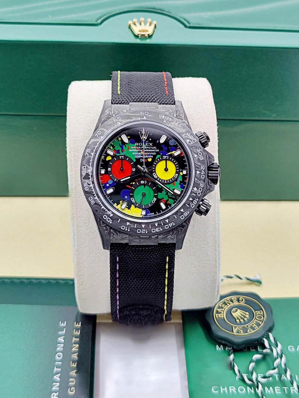 【Super Clone】Rolex Daytona DIW Carbon Motley Multicolour Dial Super Clone Swiss Replica Watch | Custom Made Limited Edition | 4130 Swiss Movement