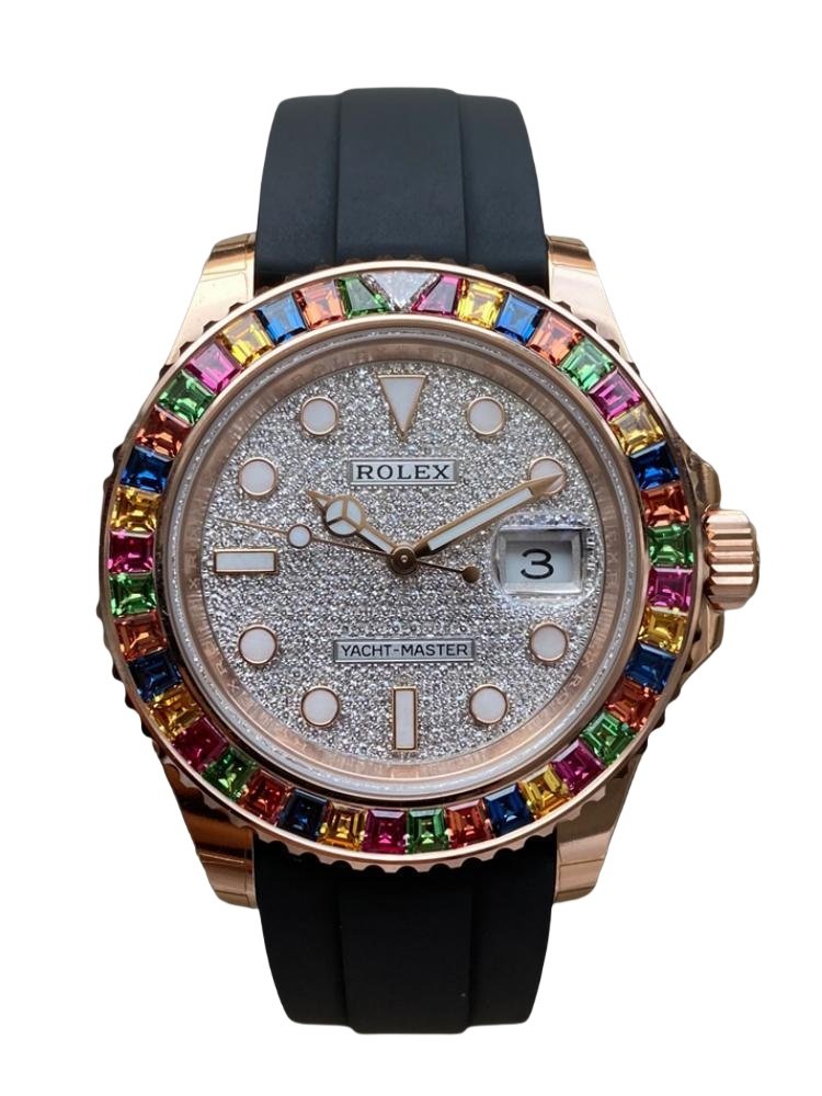 【Super Clone】Rolex Yacht-Master II 126655 Diamond Pave Dial Rose Gold 40mm Mens Replica Watch