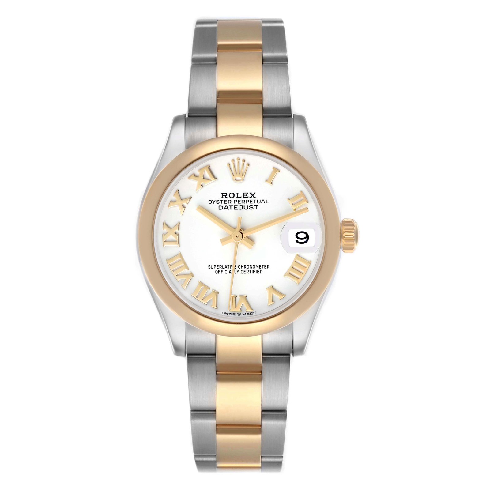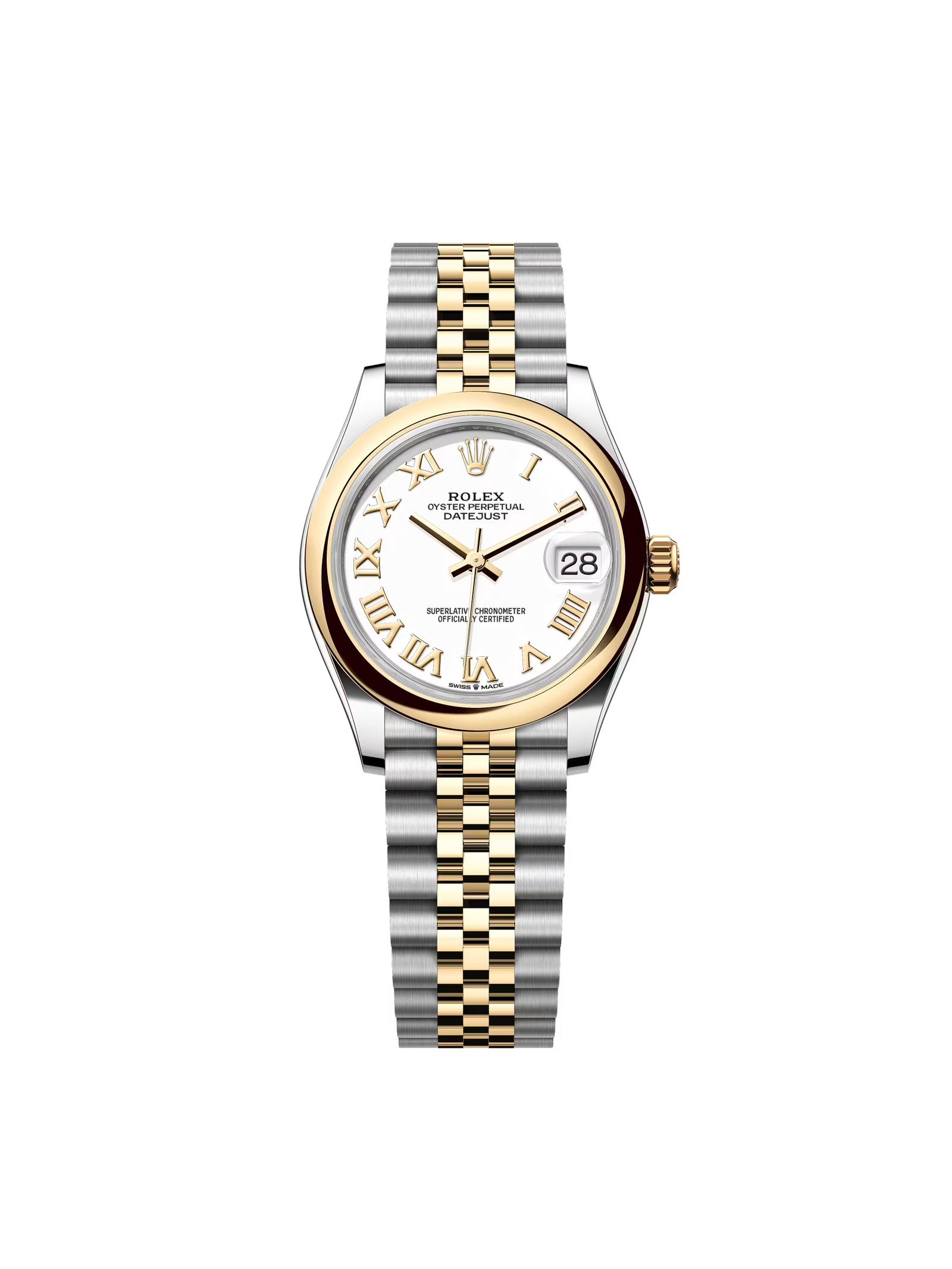 | Band | Oyster, three-piece solid links / Jubilee, five-piece links |