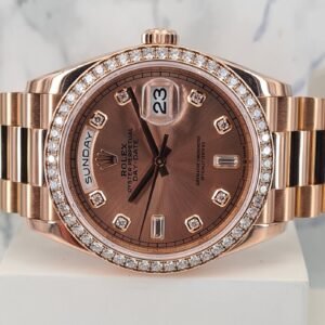 | Dial Details | Diamonds in 18 kt gold settings and baguette-cut diamonds at 6 and 9 o’clock |