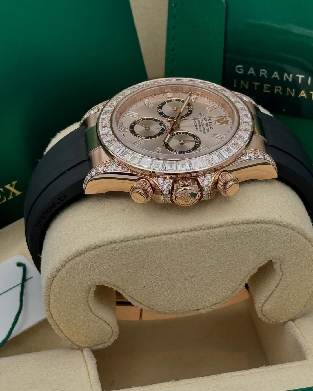 | Dial Color | Sundust, bright black counter rings set with diamonds |