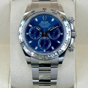 【Super Clone】Rolex Cosmograph Daytona 40mm White Gold Diamond Baguette Silver Dial Diamond Bezel Oysterflex – 126539TBR