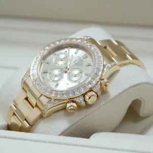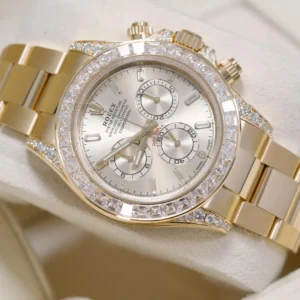 【Super Clone】Rolex Cosmograph Daytona 40mm Yellow Gold Diamond Baguette Champagne Dial Diamond Bezel – 126598TBR