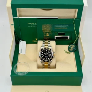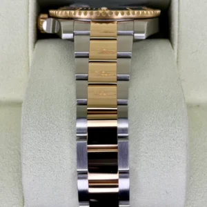 | BRACELET | – Oyster design, two tone flat three-piece links – Made with Solid 904L Grade Stainless Steel with DLC scratch-protection coating and 18k Yellow Gold plating on the middle links – Solid threaded screws, so you can easily remove bracelet links with just a small screwdriver – Folding OysterLock Safety Clasp with Rolex Glidelock extension system, exactly as Original |